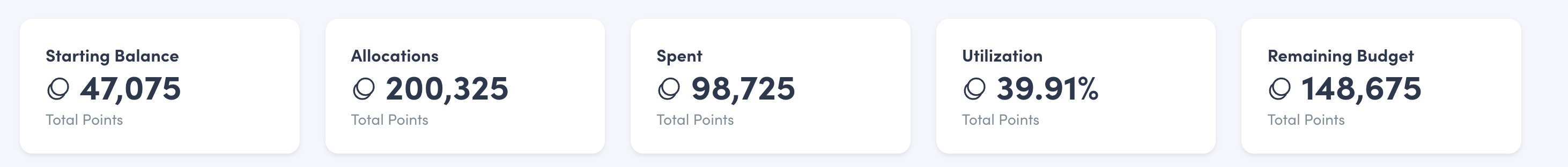- Total Budget Utilization - Percentage of points allocated to employee wallets in the time frame selected