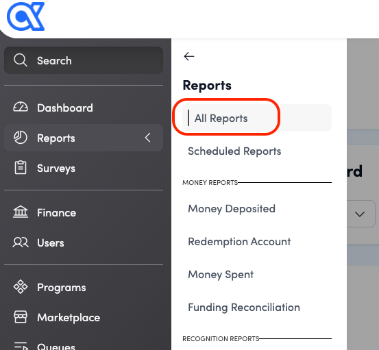 Select the Admin button at the bottom of the left navigation menu and you'll be taken to your Dashboard. Click on the Reports tab. Click on All Reports at the top of the list.