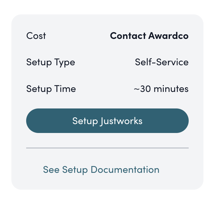 Note: This is a paid feature. Contact an Awardco representative to enable the Justworks integration before proceeding.