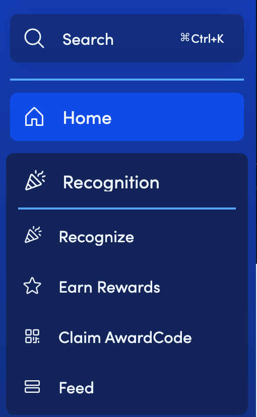 In the left navigation menu, click "Feed.” under the “Recognition” section.