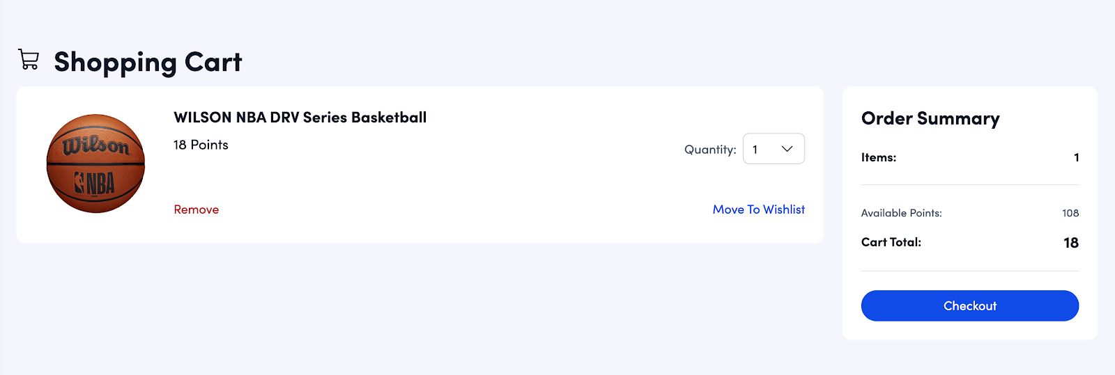 The Cart Balance will continuously update, showing the total points for the items in your cart, helping you stay within your point limit.