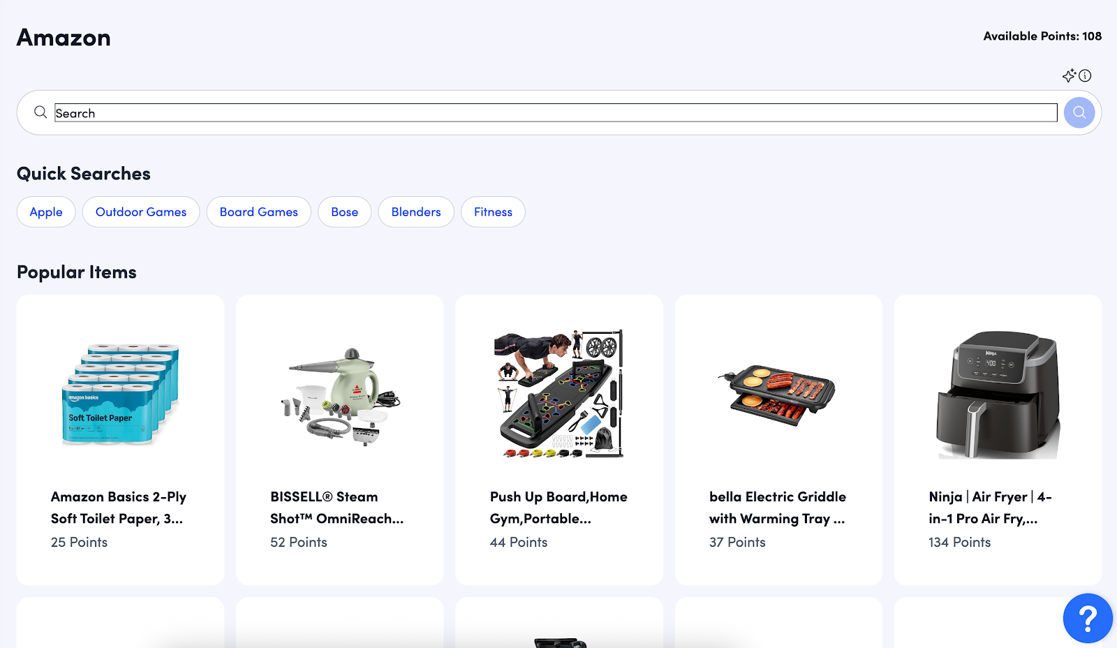 Use the search bar to find specific items. You can redeem a single high-value item or several smaller items, as long as the total point cost doesn't exceed your balance.