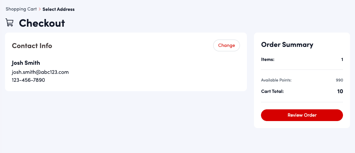 Review your contact info. Then, click "Review Order."