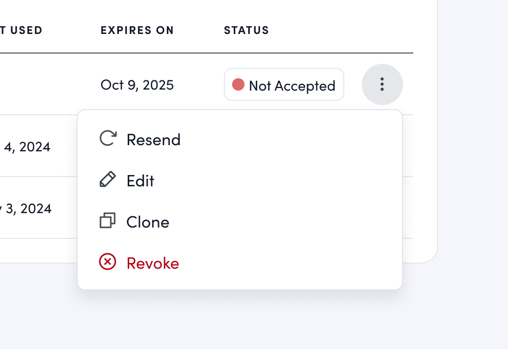 If an API key shows a “Not Accepted” status or wasn’t accepted within 24 hours, you can resend it.