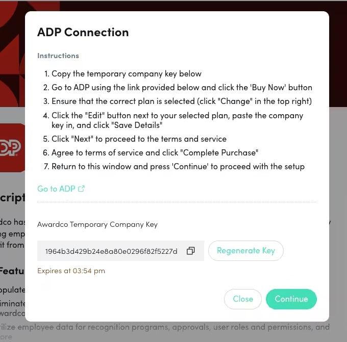 While the integration is available in the ADP Marketplace, we suggest starting the setup in the Awardco Integrations Library.
