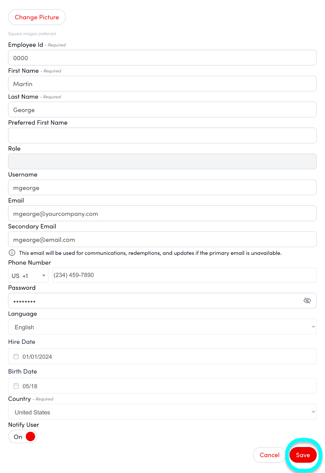 Important Note: While you can add users manually, we strongly recommend using the user file you initially transferred to Awardco for all bulk edits and updates to user information. The Awardco system prioritizes the information contained in this file. Therefore, any manual changes made within the platform will be overwritten if the subsequent user file does not reflect those changes.