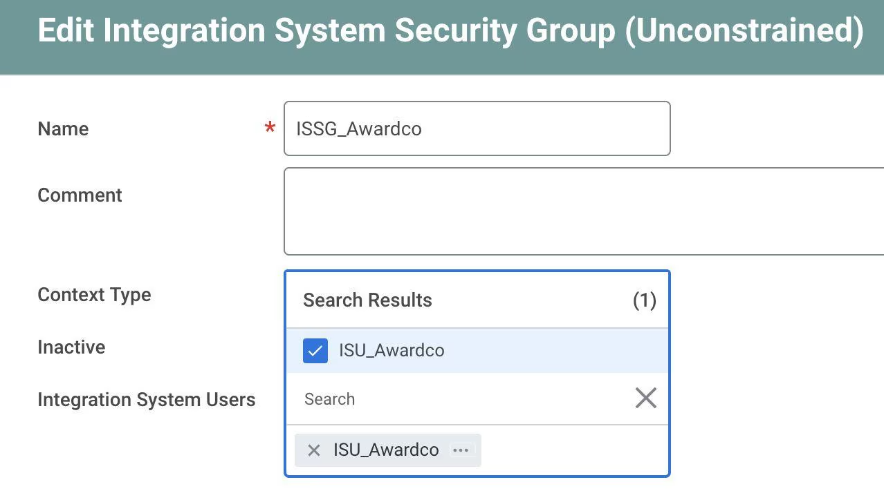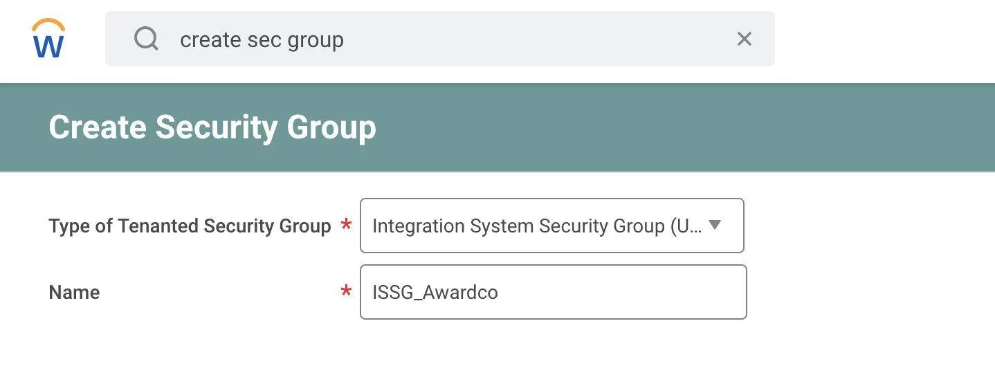 Before beginning the setup process, you’ll need to create a specific ISU account for Awardco. This user will act as the dedicated connection point between Workday and Awardco. Follow the instructions below for creating an ISU and setting it up with the proper permissions.