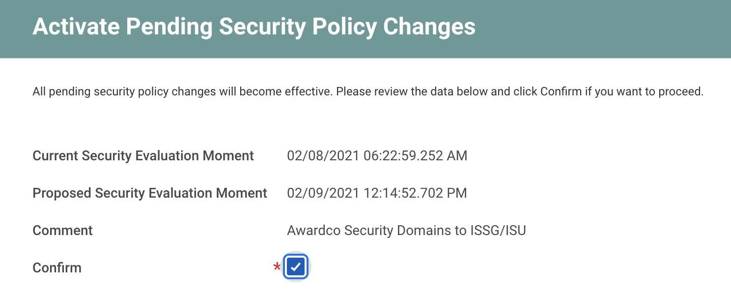 - On the next screen, you'll see a review of the security domains you're activating. Check the "Confirm" box and click OK.