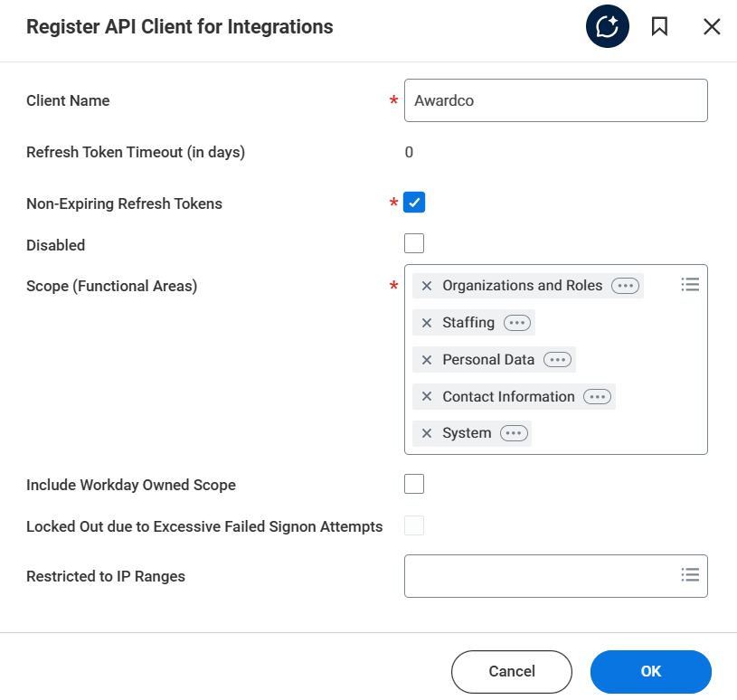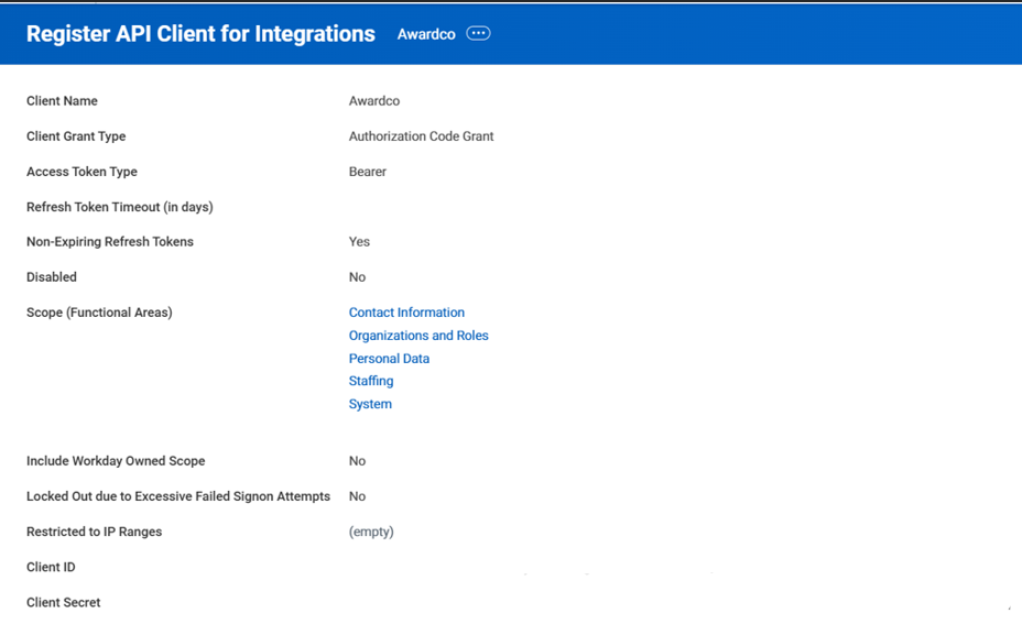 - Registering Awardco as an API Client in Workday