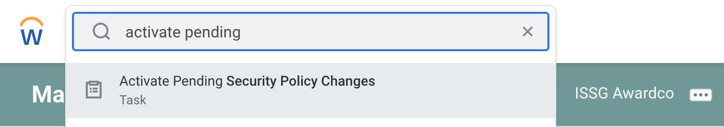 - In the Workday search bar, type "Create Security Group" and click the task.