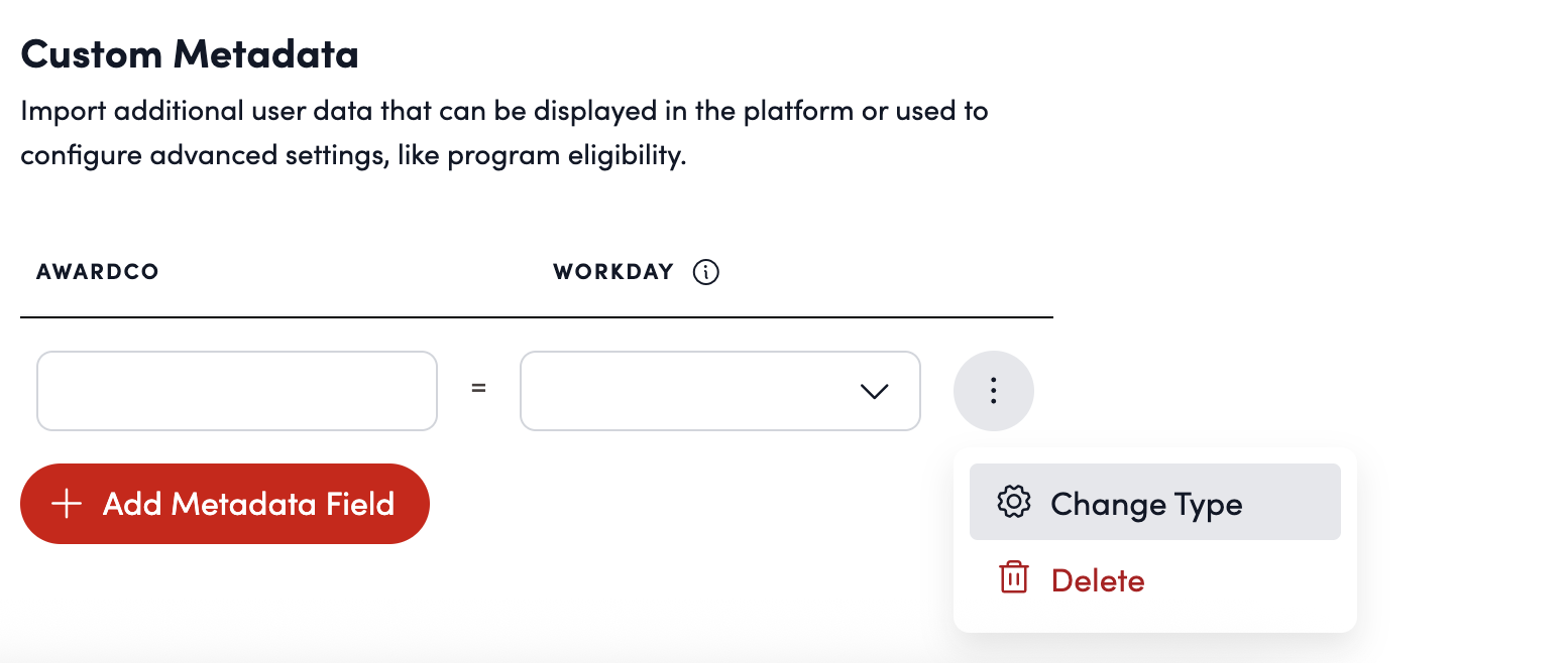 - Click the three dots to the right of the value to either change the metadata type or delete the metadata field.