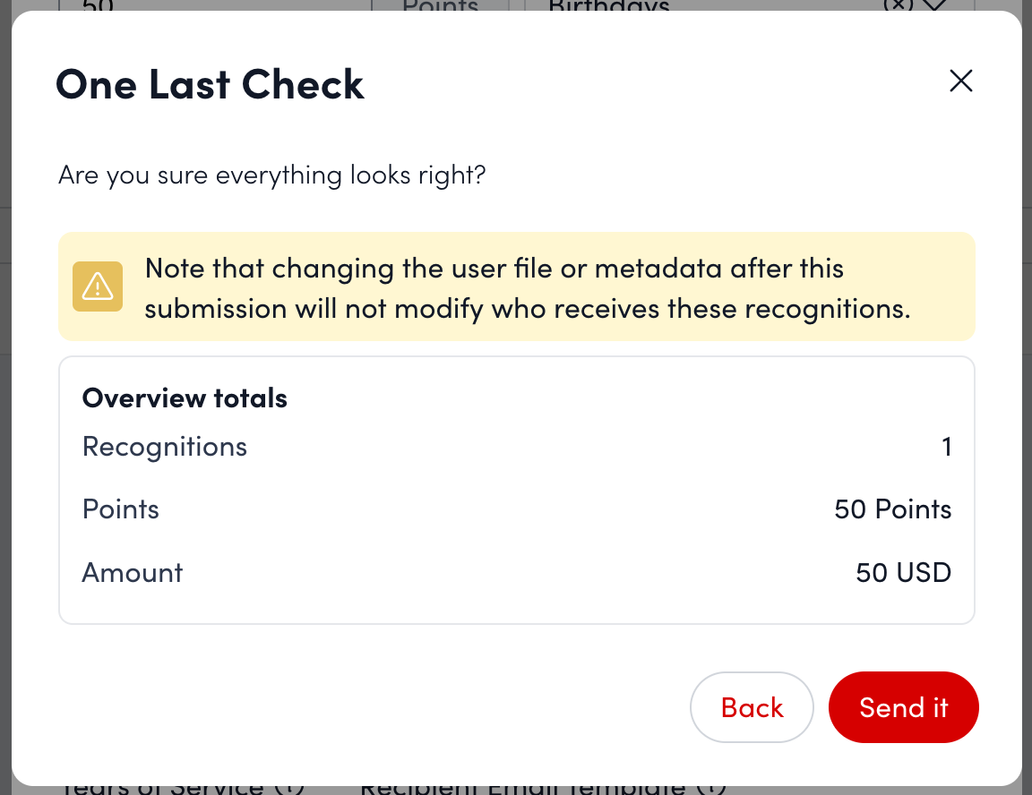 - Points* - Enter a point value you’d like to award to each recipient.