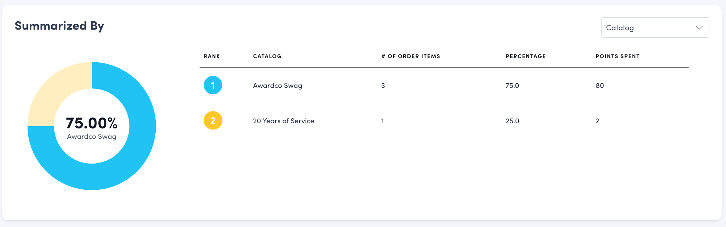 | CATALOG* | Awardco Swag | Catalog the item was redeemed from. |