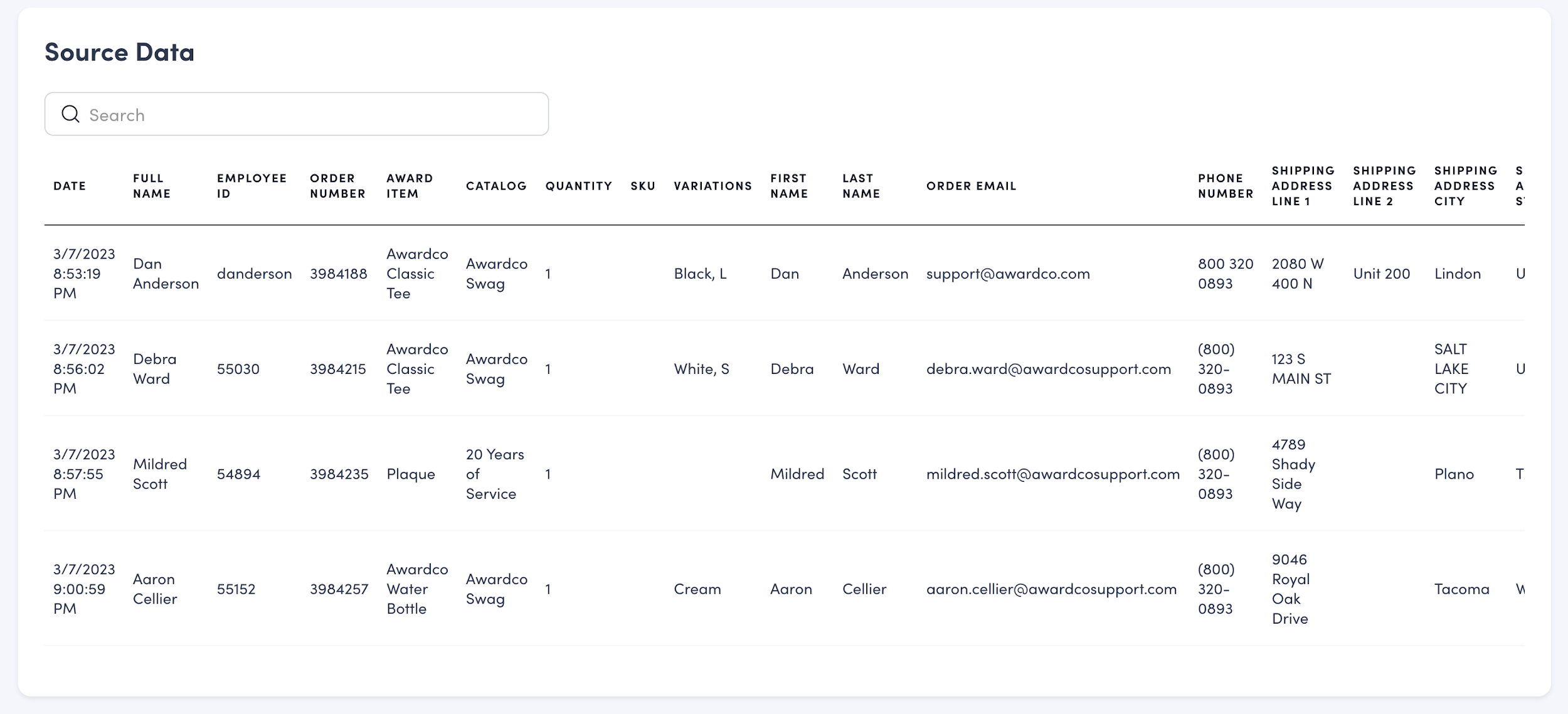 | ORDER EMAIL* | support@awardco.com | The email address provided on the order for receiving the shipment. |