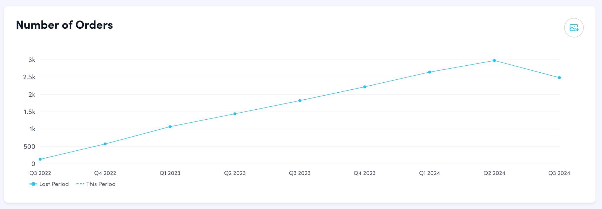 To export any chart, graph, or data visualization as a single PNG image, click the circular icon located at the top right corner of the graph.