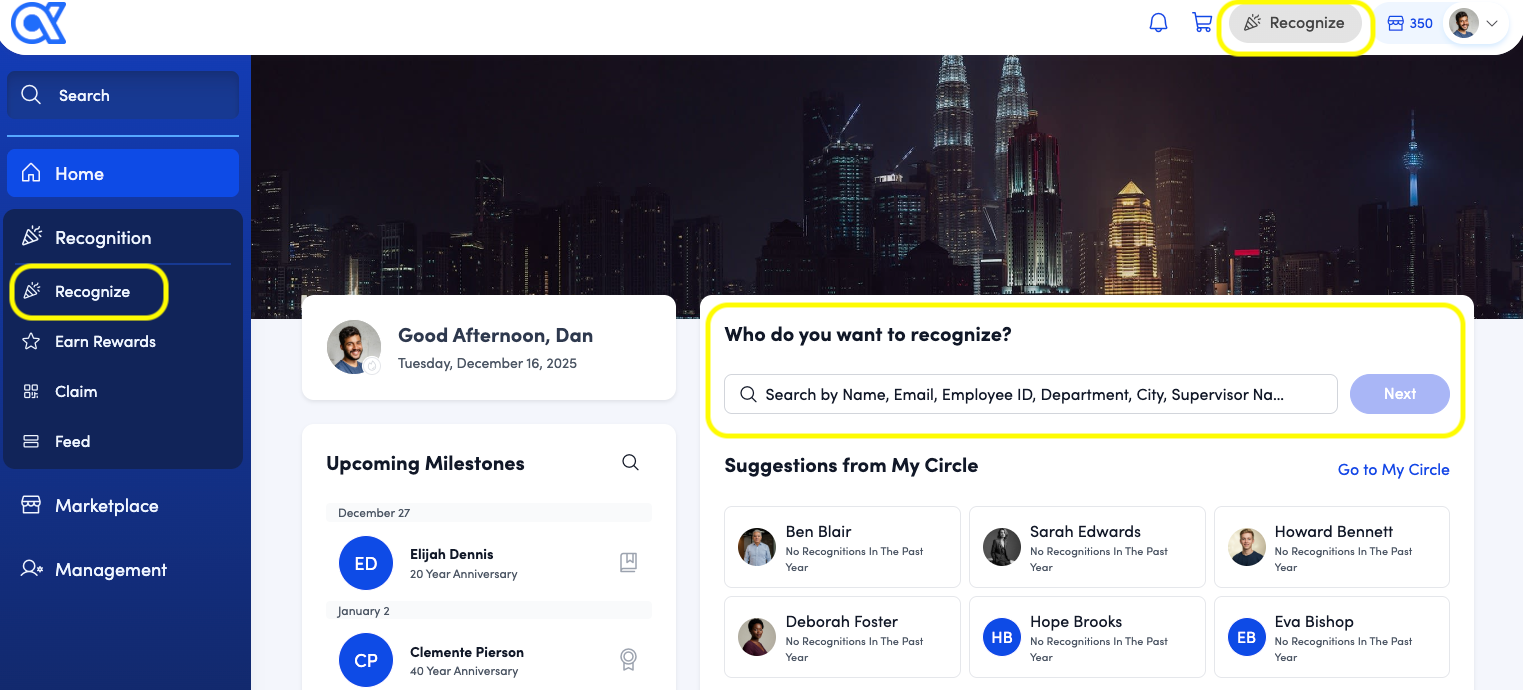 - The “Recognize” link in the left navigation menu under “Recognition”.