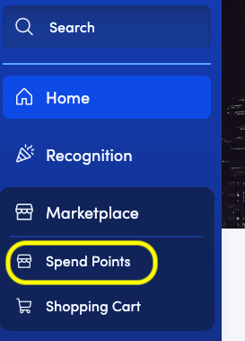 Once logged in, you will see your Home Page. On the homepage, select “Marketplace” from the left navigation menu, then click “Spend Points.”