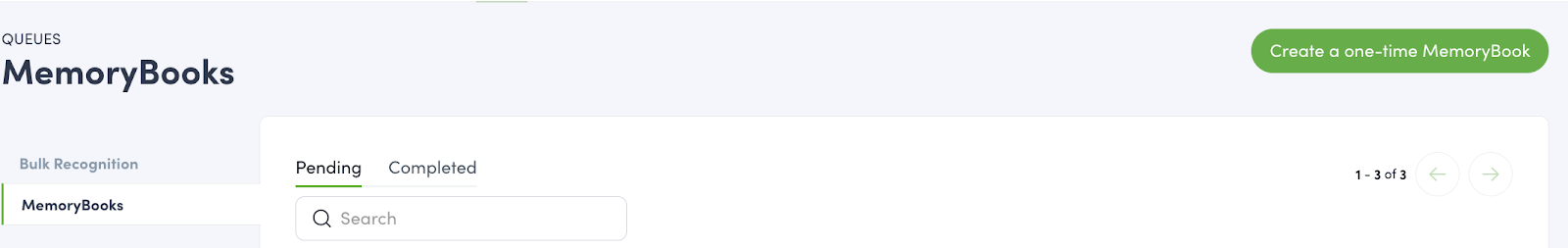 Super Admins and users with the One-time MemoryBooks Creation permission can create one-off MemoryBooks via the button on the MemoryBook queue page.