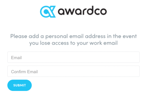 - Upon your initial login to your Awardco account, you may see a secondary email collection page. The secondary email address you submit on this page is the email address to which your prepaid card will be sent if you leave the organization. It's crucial to provide a valid personal email address. Do not duplicate your work email address, as you may lose access to it when you leave the organization.