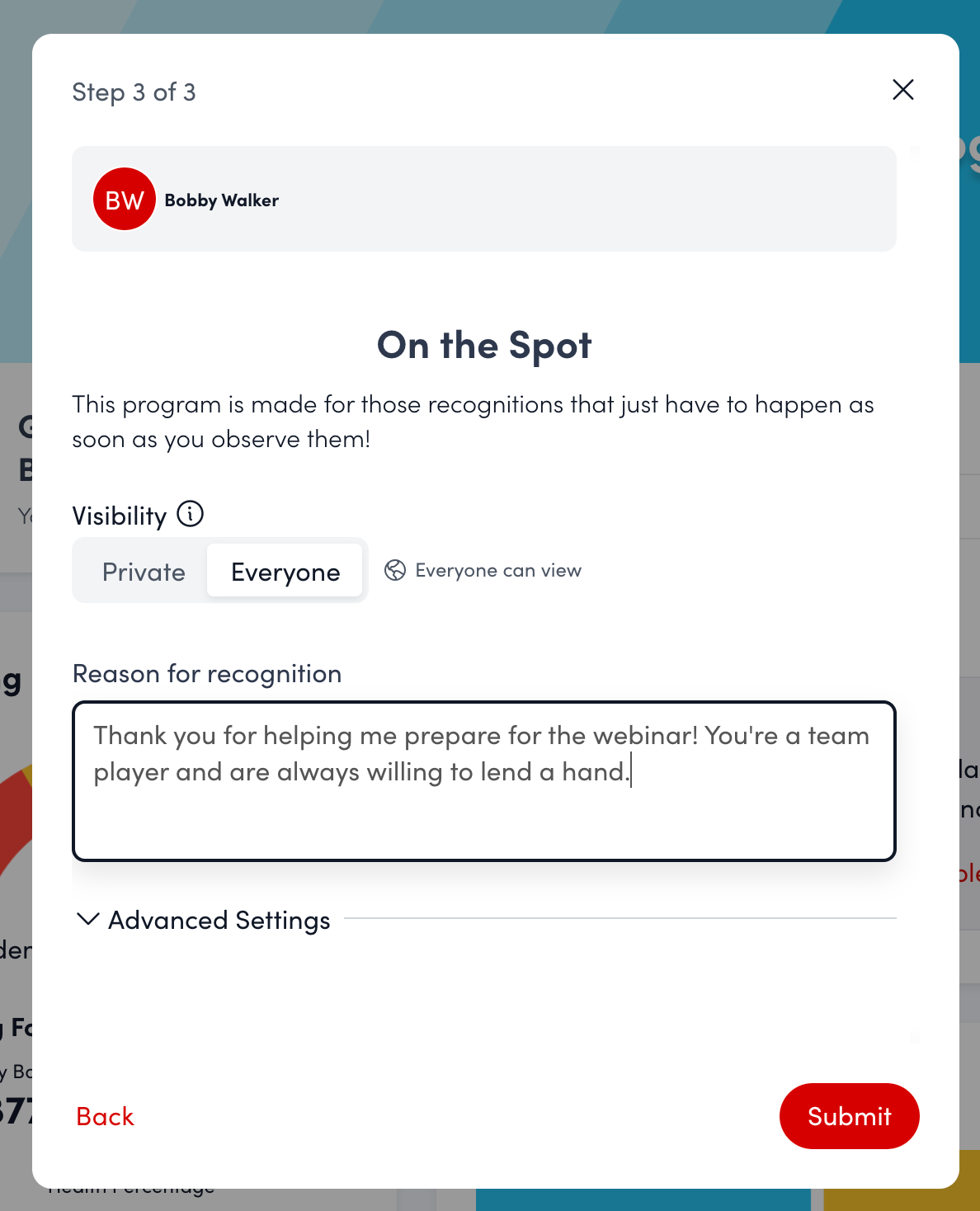 View the recognition on the public social feed.