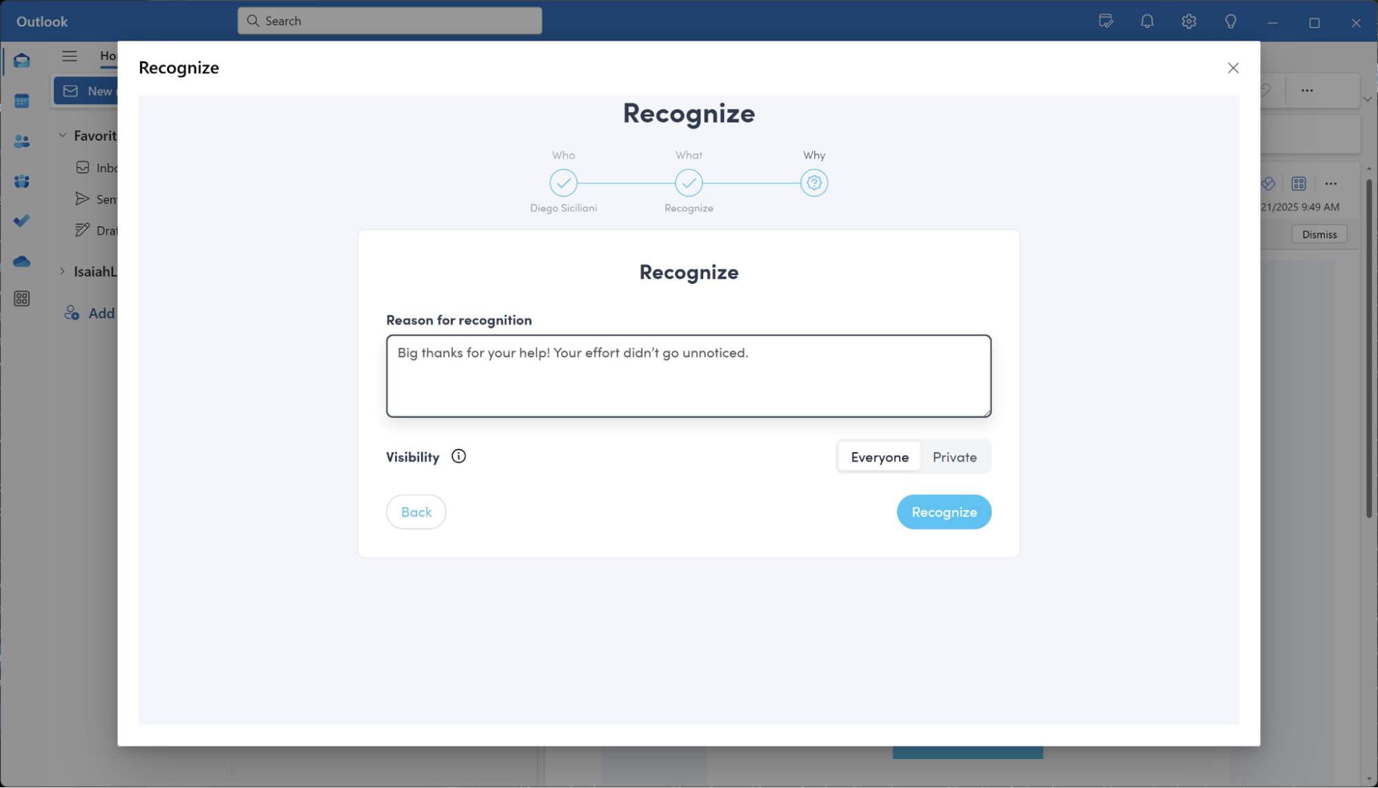 - Enter the name(s) of the person(s) you want to recognize, then click "Next".