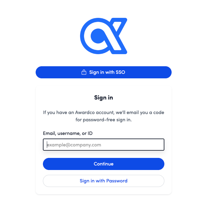 If unsure of the URL, visit the Awardco website and click ‘Sign In’.