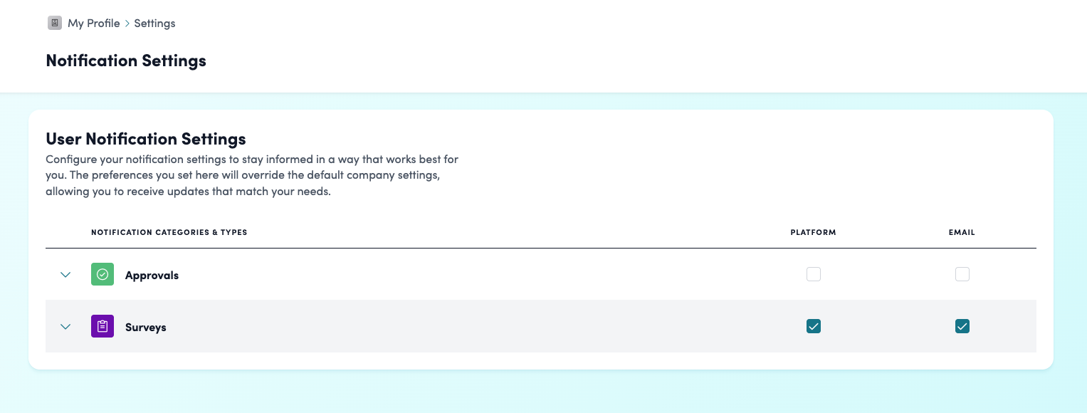 Keep in Mind: If a checkbox is grayed out or has a lock symbol, your administrator has set that as a required notification channel.