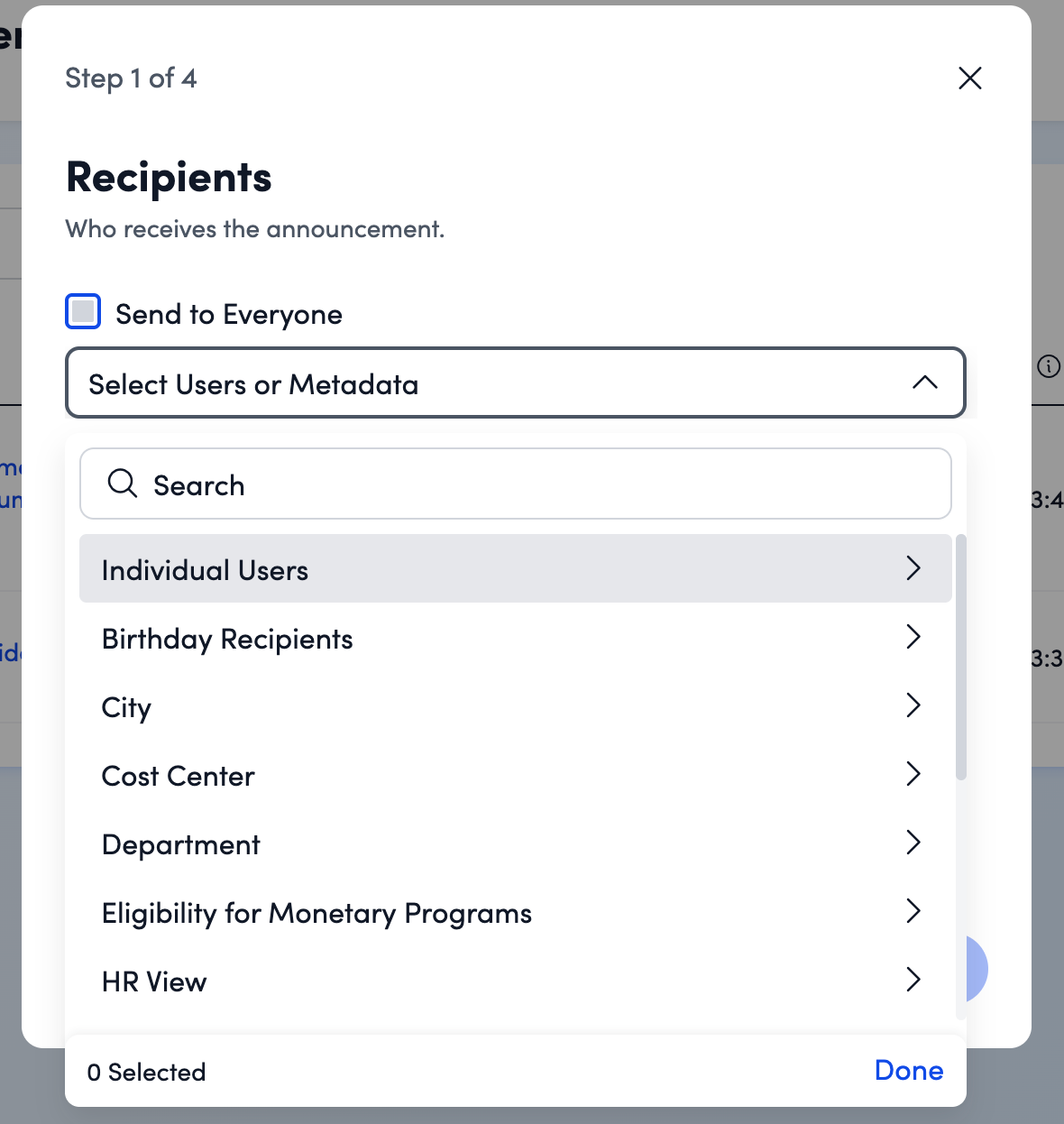 - Using metadata, you can share the announcement with a specific audience.
