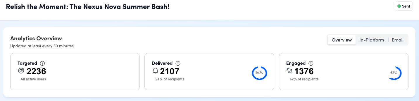 - View key metrics: See delivery and engagement data (such as in‑platform views and email performance) to understand how many employees are seeing and interacting with your message.