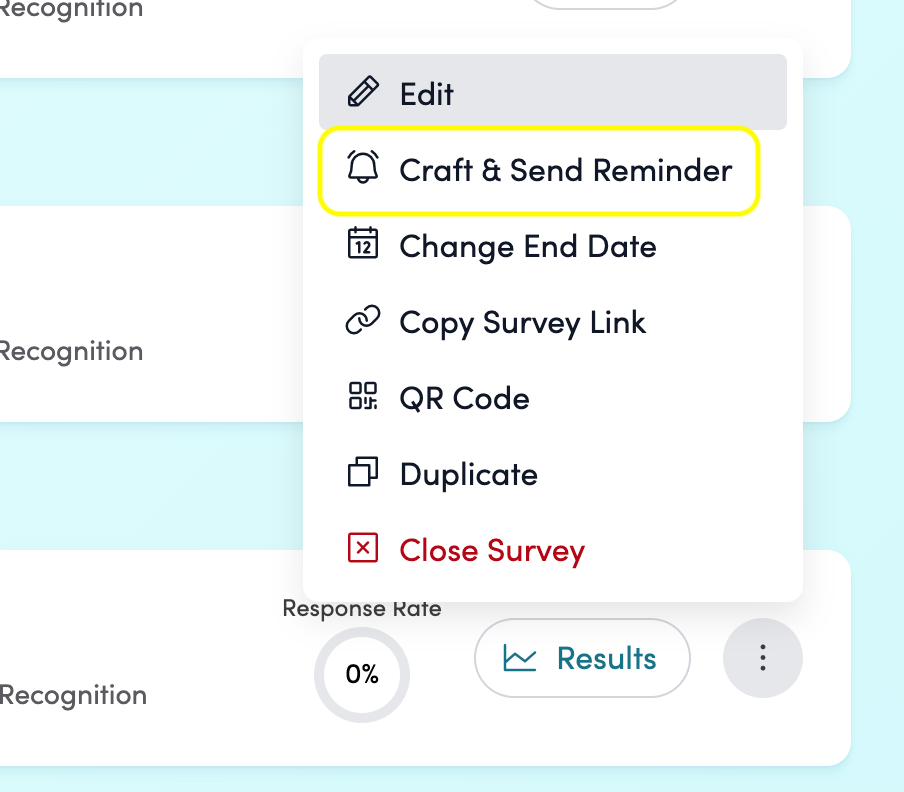 Reminders can only be sent once a survey is Live (Open Status). To send a one-off reminder: