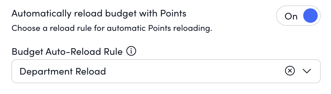 If you want points to automatically reload on a regular schedule, toggle the Budget Auto-Reload option to 'on'. Then, select an auto-reload rule from the dropdown menu.